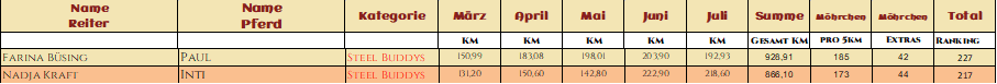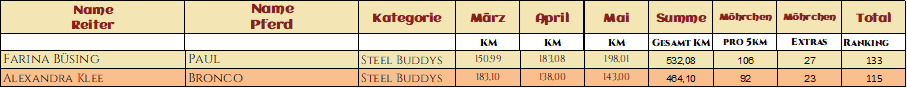 2* Melly mit ihrem tollen El Dorado legten zusammen 425,15km zurück und sicherten sich mit ihren Extraaufgaben 161 Möhrchen