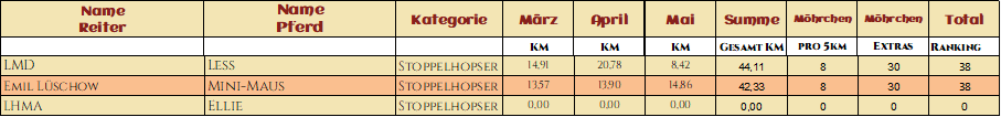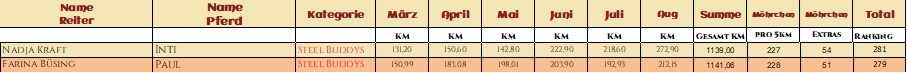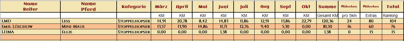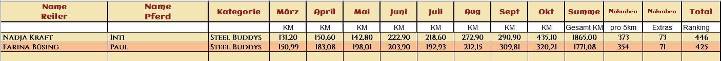 2* Melly mit ihrem tollen El Dorado legten zusammen 425,15km zurück und sicherten sich mit ihren Extraaufgaben 161 Möhrchen
