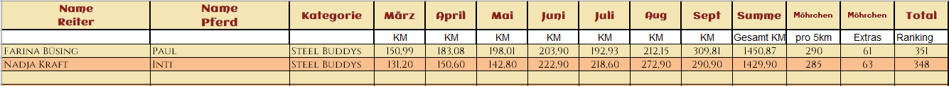 2* Melly mit ihrem tollen El Dorado legten zusammen 425,15km zurück und sicherten sich mit ihren Extraaufgaben 161 Möhrchen
